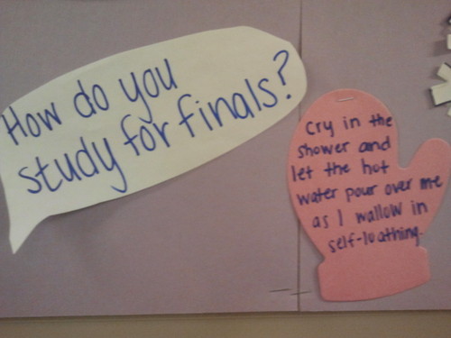 Semester exams, buh. I won't complain too much because well, they just stink. They really do. But I'm striving to make an awesome grade I need to and I will. *gameface*